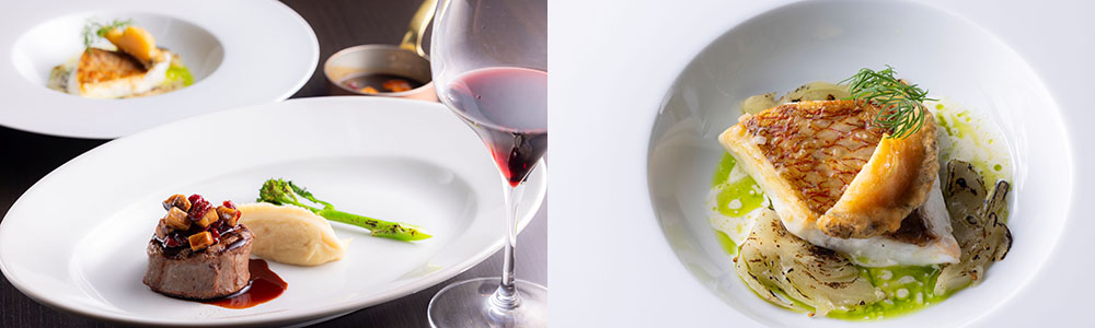 アトランティックサーモンのバーベキューグリル / ドライエイジング鴨胸肉の炭火焼き / 国産フランクステーキ100g +2,500円