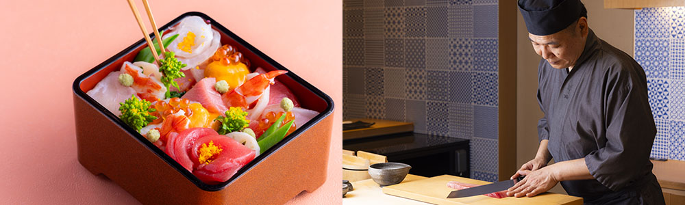 鮪 中とろ 白身魚 才巻海老 雲丹 いくら 蓮根 絹さや - 止椀