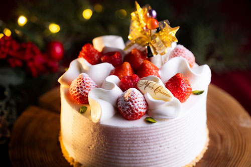 いちごがたっぷり入った、人気の定番クリスマスケーキ。2種類の生クリームを使ったコクのある味わいと、いちごの酸味がお口の中で見事に溶け合います。